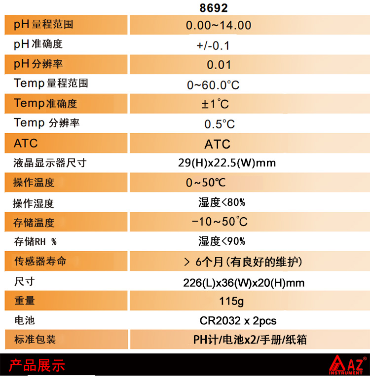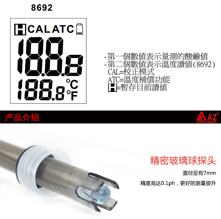 臺灣衡欣AZ8692便攜式ph計|AZ-8692酸堿度計